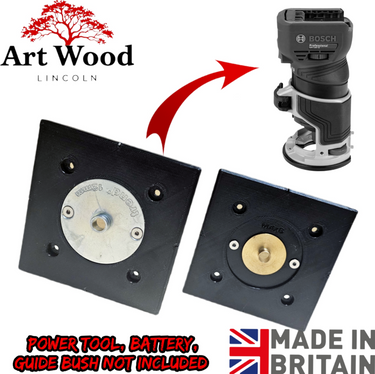 Replacement router base 2in1 to fit router and guide bushes Trend 60mm and Katsu. The router base is supplied with 2 pcs screws for the bush fitment.