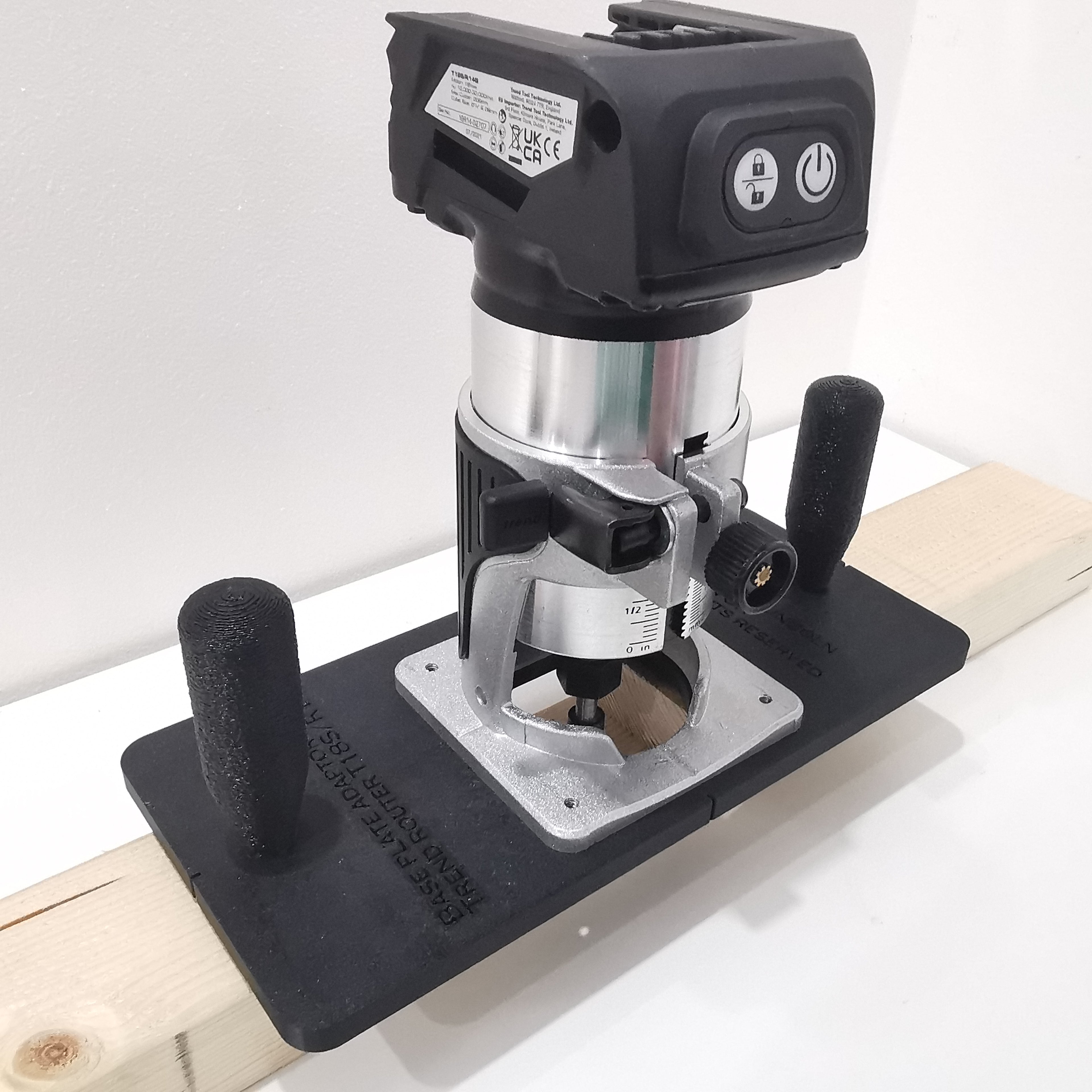 This is a replacement base for your trimmer router that will provide extra stablity and support when doing trim work. Base are manufactured in the 3D printing process and are very robust. The surface has no "finish", i.e. it is not post-treated (sanded and/or varnished) but remains as it comes from the 3D printer.