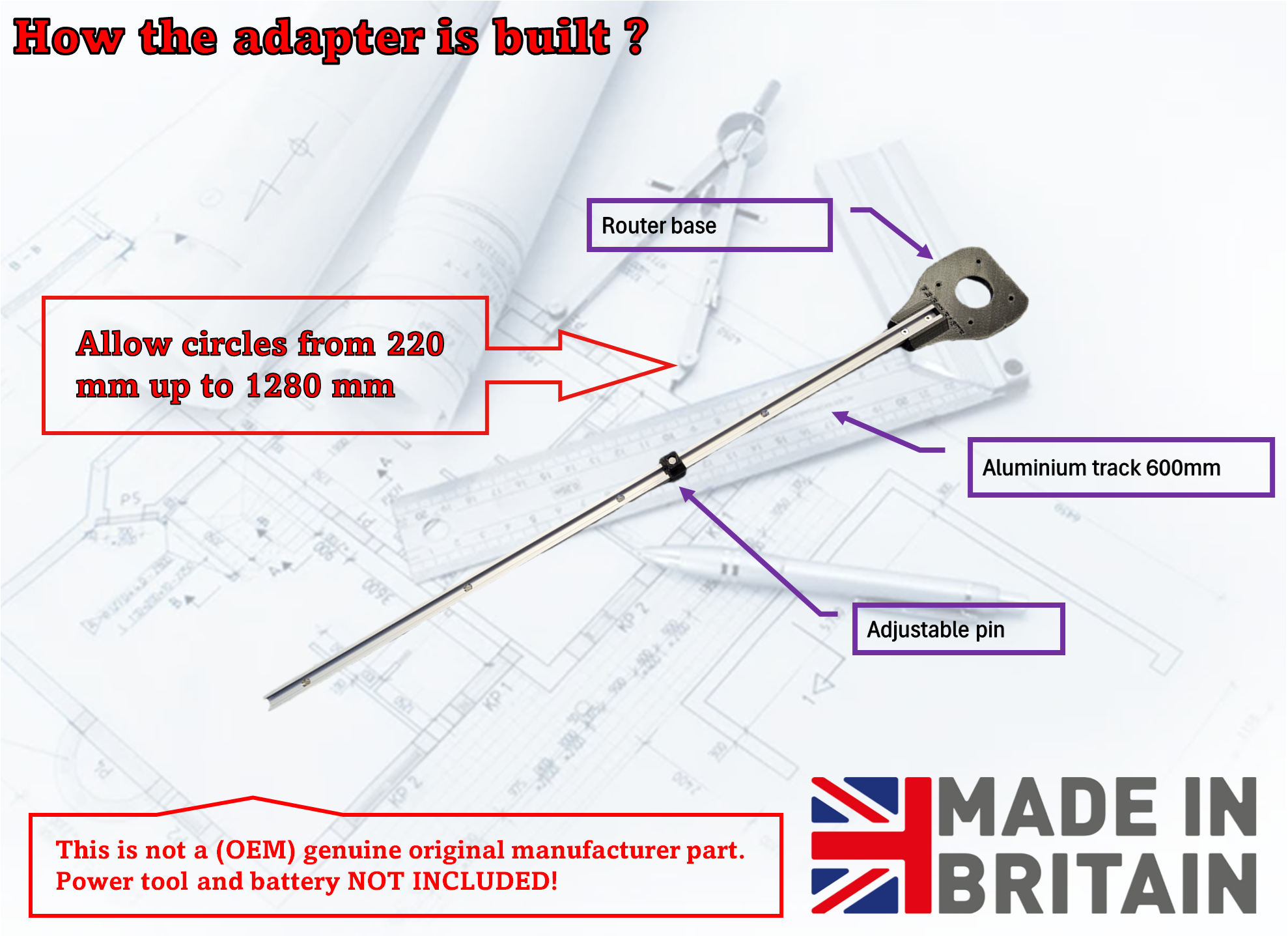 Ryobi RTR18-0 R18TR-0 P601 circle jig adapter router base 220-1280mm