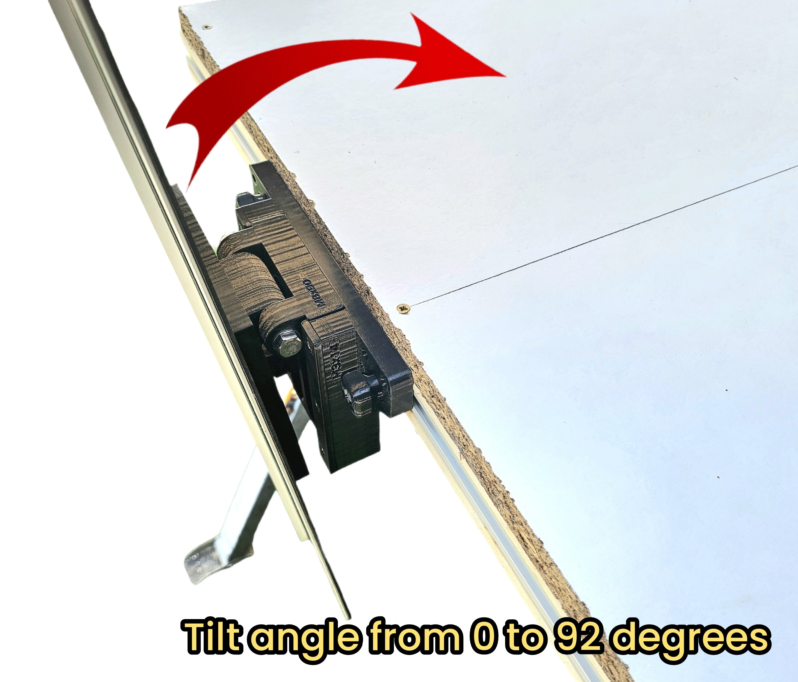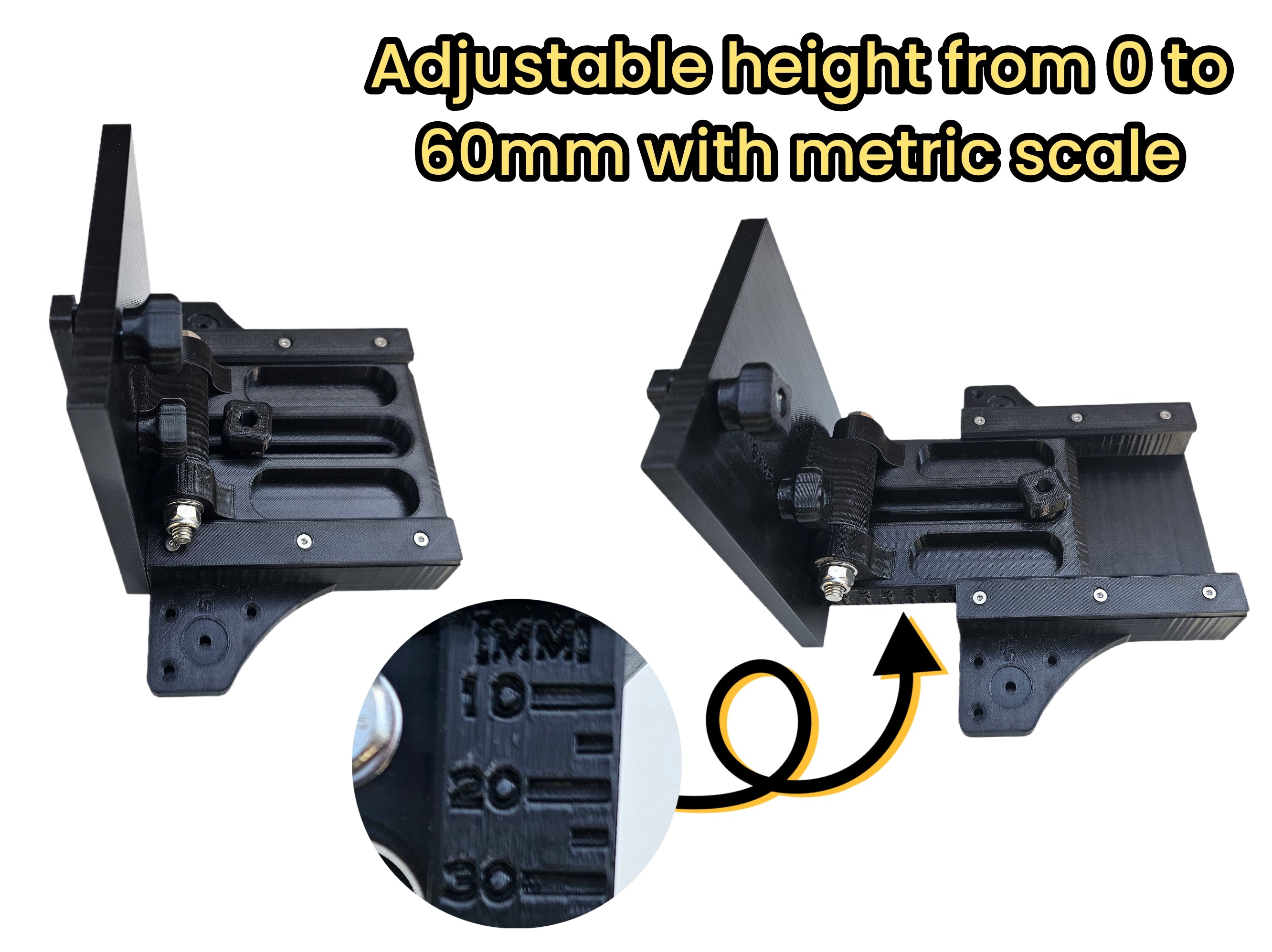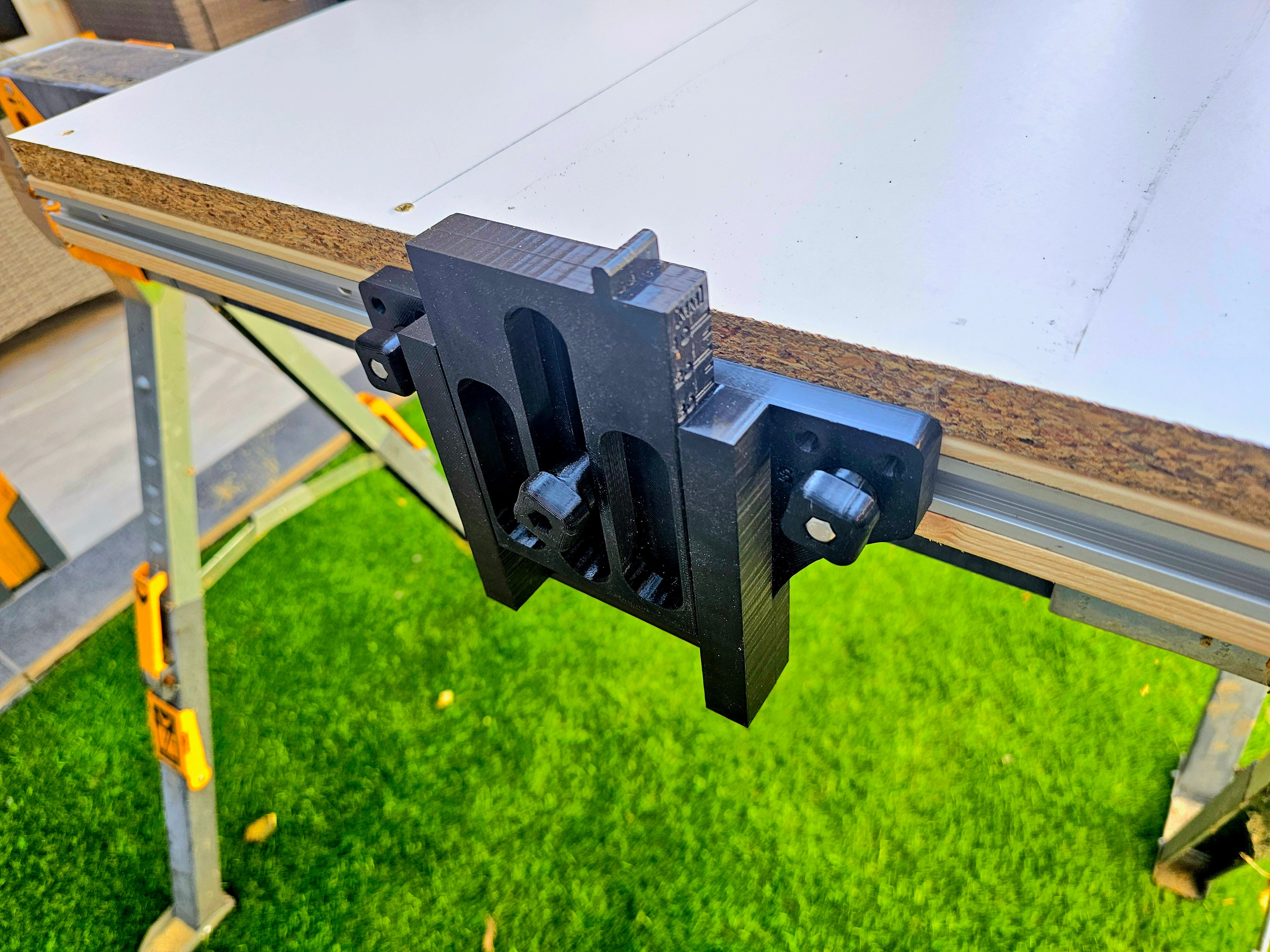 The hinge are manufactured in the 3D printing process and are very robust. The surface has no "finish", i.e. it is not post-treated (sanded and/or varnished) but remains as it comes from the 3D printer. Due to the process technology (3D printing), small optical defects can never be ruled out. However, these amount purely to the optics and do not affect the function of the slider. No more fidgeting to lock your track to your workbench only to have to unclamp every time you want to change workpieces. Guide rail hinge is supported at the front & back it means virtually zero play. Once you lock in your height, you can open and close the hinge knowing that it will return to the same location every time.