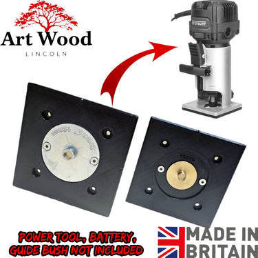 Replacement router base 2in1 to fit router and guide bushes Trend 60mm and Katsu. The router base is supplied with 2 pcs screws for the bush fitment.