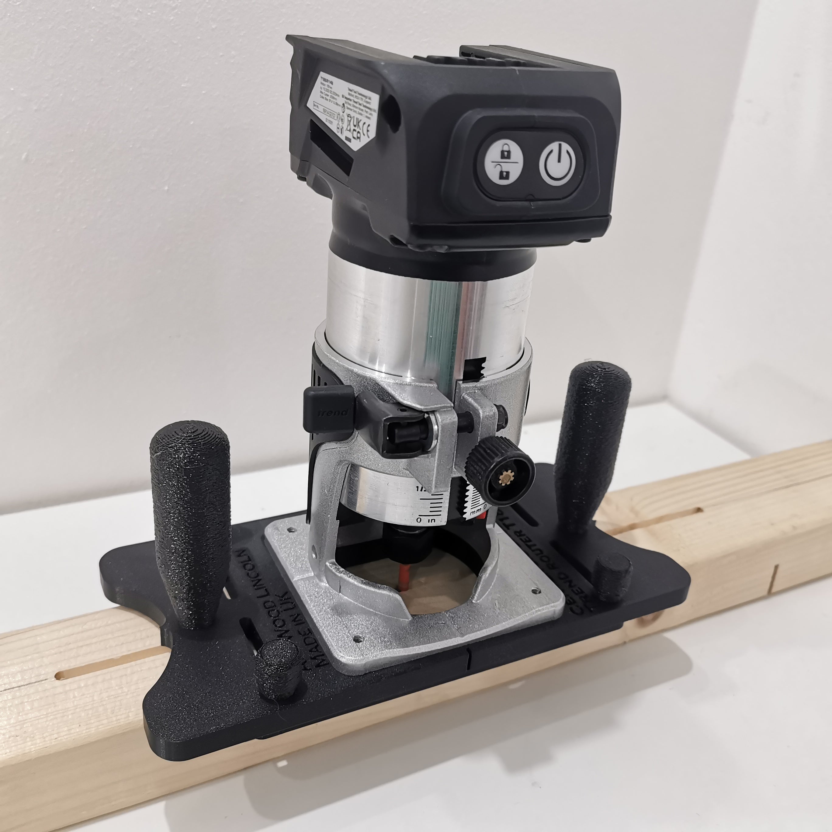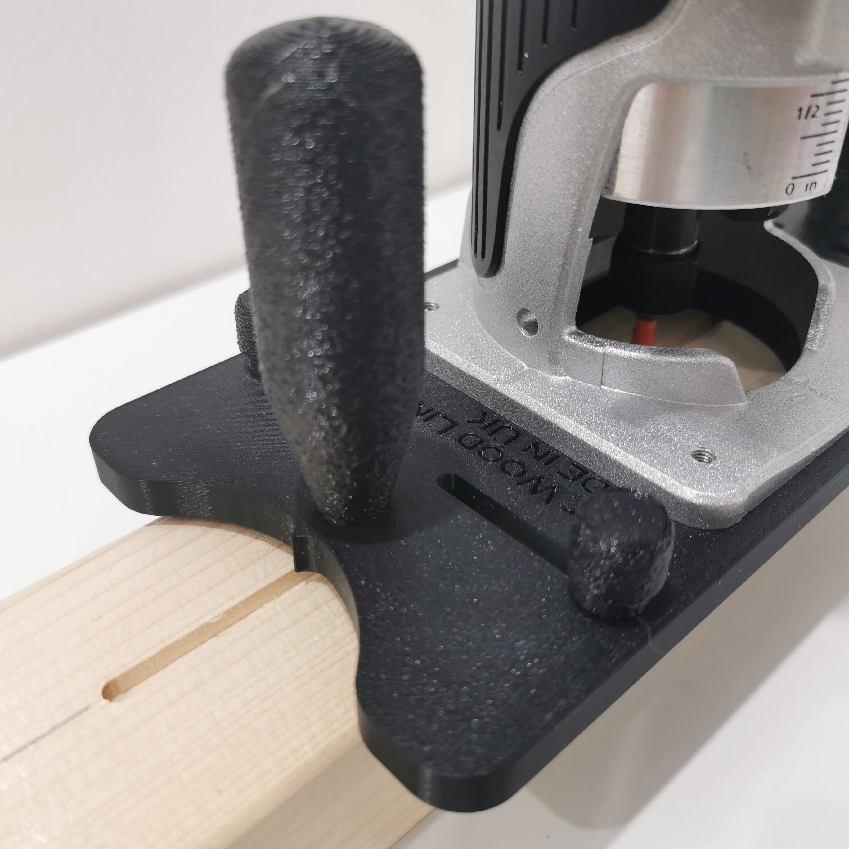 Specialized router jig adapter designed for precision work on narrow timber sections. The adjustable fence system, with spacing adjustable up to 65mm, delivers superior workpiece control and operator safety during routing operations. Equally suited to professional woodworkers and serious hobbyists. Constructed via 3D printing technology, this adapter combines exceptional structural integrity with functional reliability. The surface maintains its raw 3D-printed state without secondary finishing processes. Minor surface irregularities inherent to the manufacturing process may occur but are purely aesthetic and do not compromise operational performance.