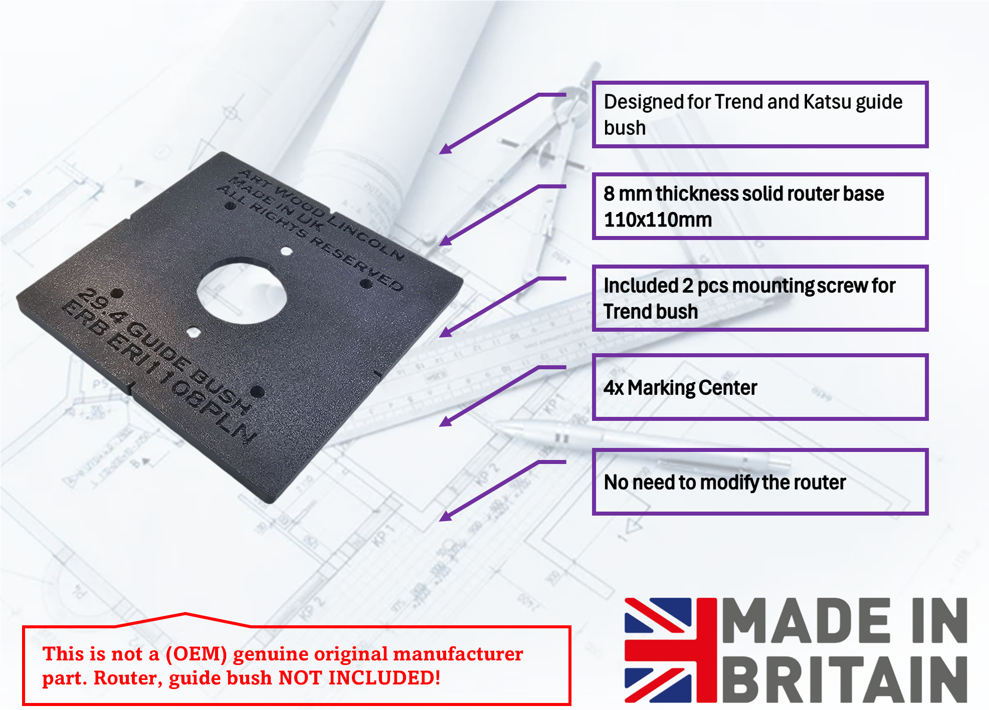 FOR SALE: Replacement router base fit Katsu and Trend guide bush compatible with specific router